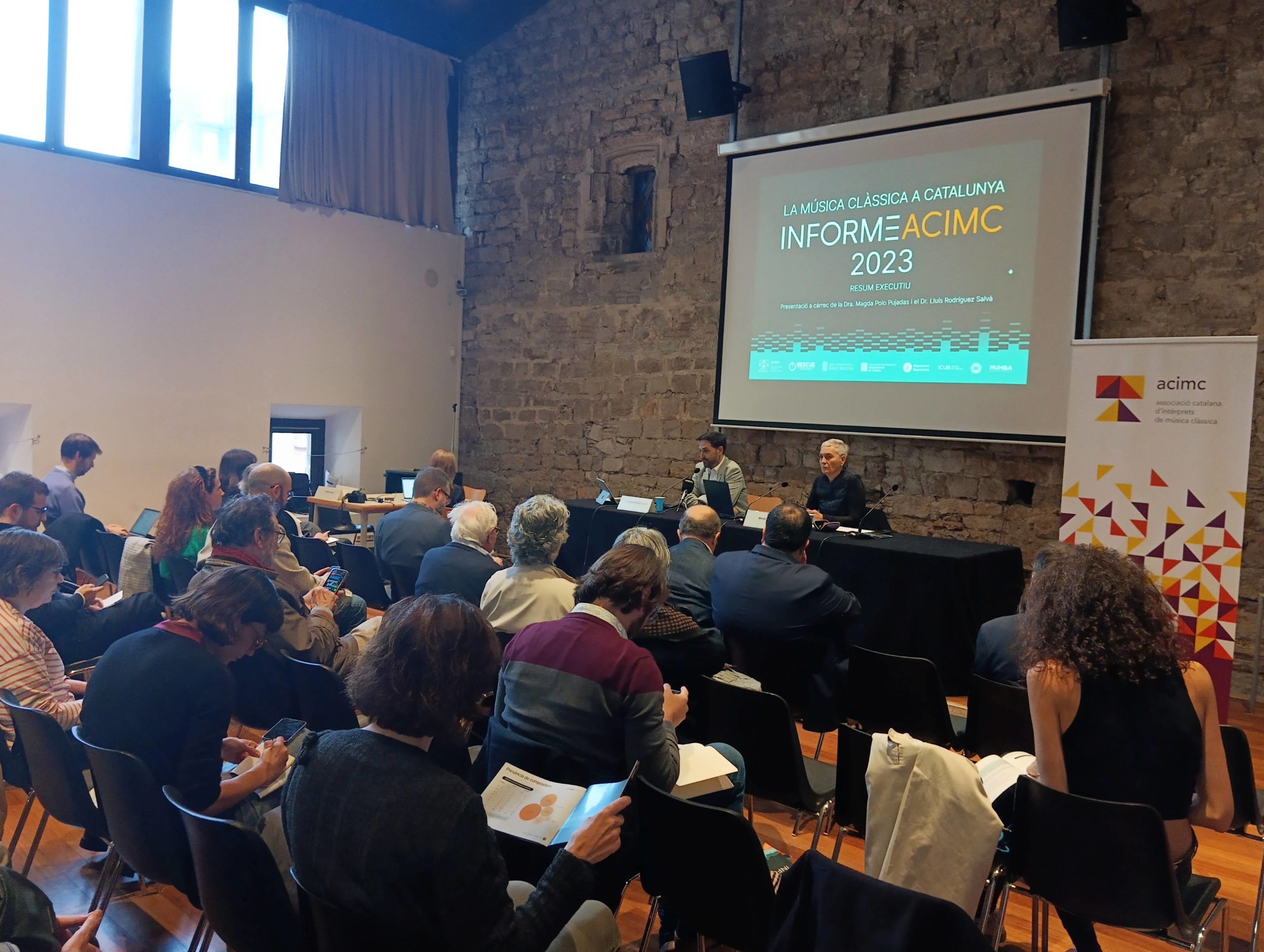 El passat dimecres 20 de novembre a la Sala Martí l’Humà del MUHBA es va presentar l’informeACIMC “La música clàssica a Catalunya” (2023), encarregat per l’Associació Catalana d’Intèrprets de Música Clàssica (ACIMC) al grup de recerca RESCUE de la Universitat de Barcelona. La presentació va anar a càrrec del Dr. Lluís Rodríguez Salvà, president de l’ACIMC, i de la Dra. Magda Polo Pujadas, coordinadora de la investigació.