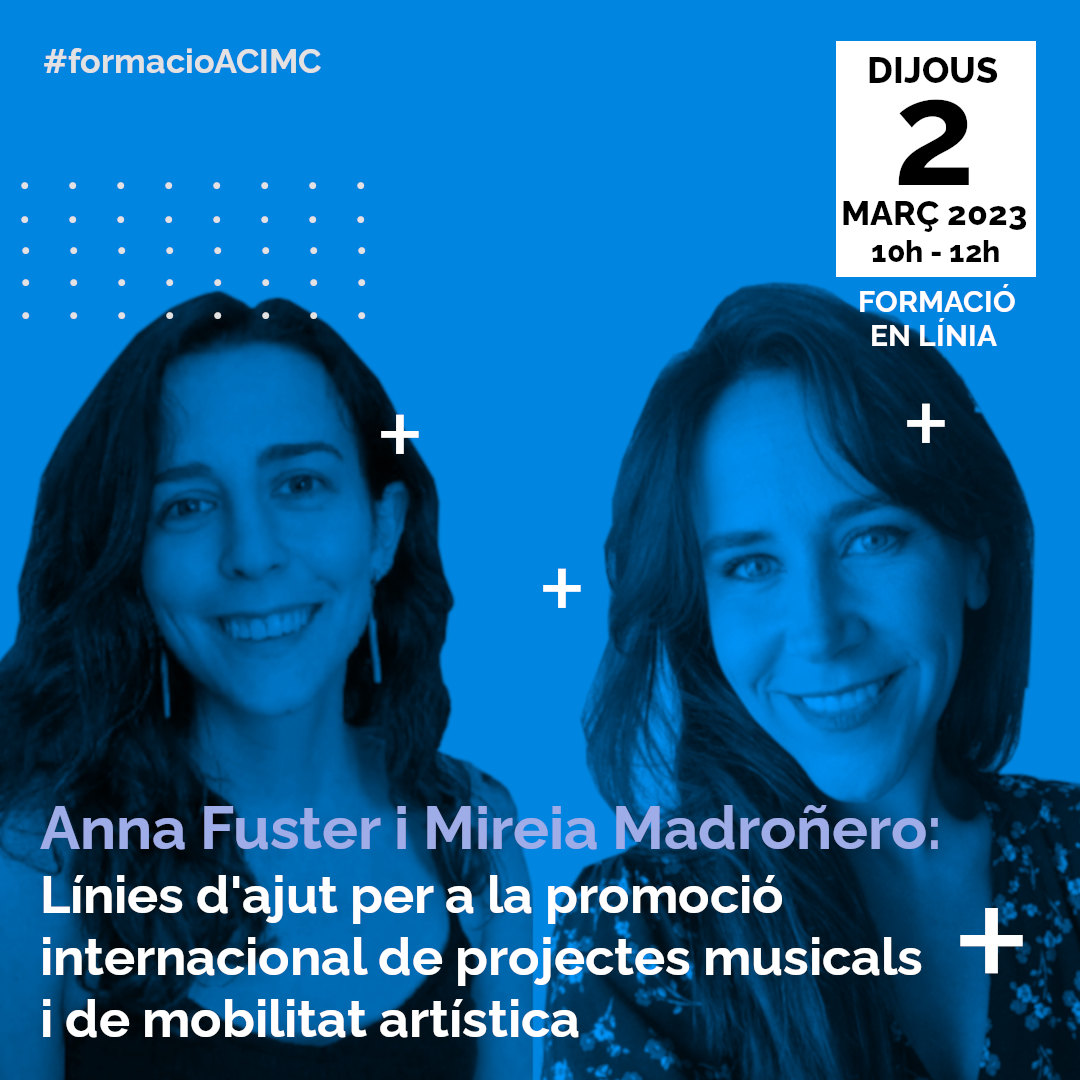 2 de març de 2023. A càrrec d’Anna Fuster i Mireia Madroñero (Àrea de Creació de l’Institut Ramon Llull, Àrea de Mercats de l’ICEC)