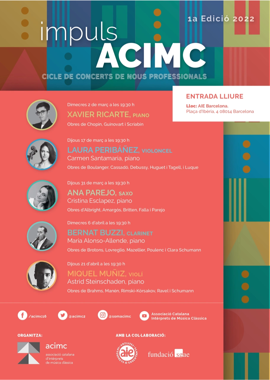 Un jurat, format per la flautista Patricia de No, el violinista Gerard Claret i el pianista Marc Heredia ha atorgat el premi AIE de la 3a edició de l’Impu...